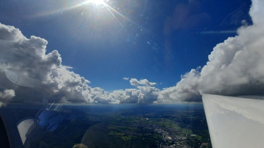 Dieses eindrucksvolle Bild entstand diesen Sommer in der Nähe unseres Heimatflugplatzes aus unserem neuen Schulungsdoppelsitzer ASK 21B heraus, den wir dieses Jahr im Rahmen unserer 75-Jahr-Feier getauft haben.